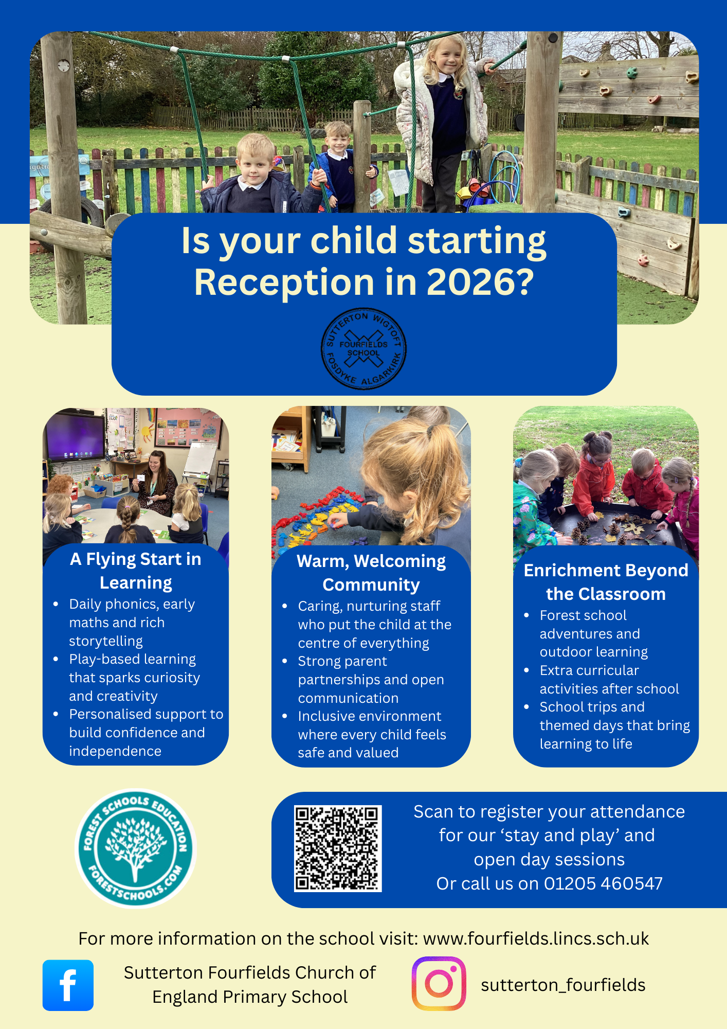 Fourfields Church of England Primary School, Park Avenue, Sutterton, Boston, Lincs, PE20 2JN